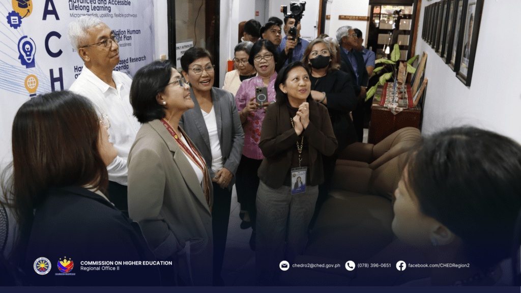 Tuguegarao City, Cagayan – Dr. Shirley C. Agrupis, Chairperson of the Commission on Higher Education (CHED), visited CHED Regional Office II (CHEDRO II) on August 8, 2025. During her quick visit, Dr. Agrupis interacted with employees and had a quick tour of CHEDRO II.